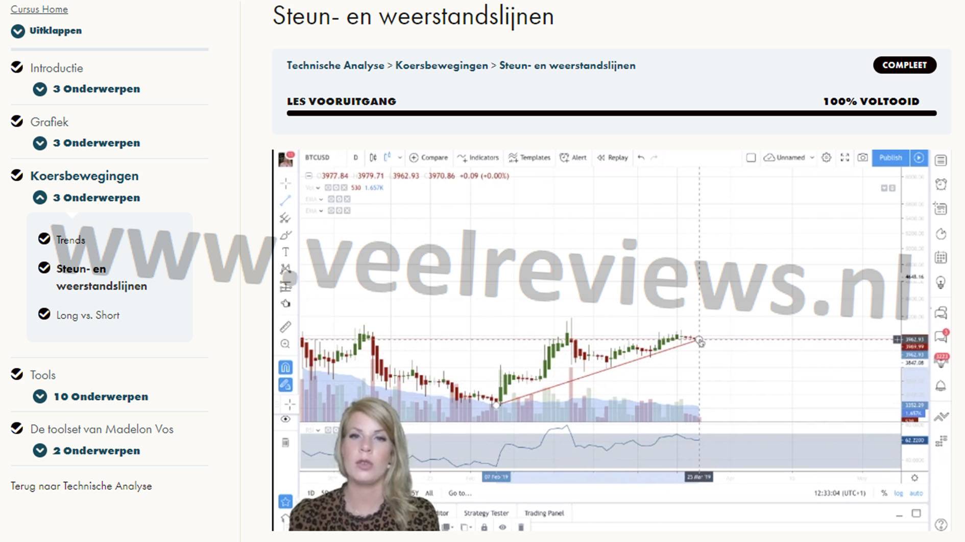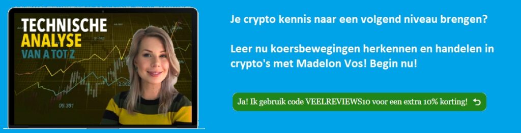 - Crypto en Trading Academy: dit zijn beide cursussen van Madelon Vos in één voordeelpakket. Als je mijn code VEELREVIEWS10 gebruikt, krijg je nog 10% extra korting.