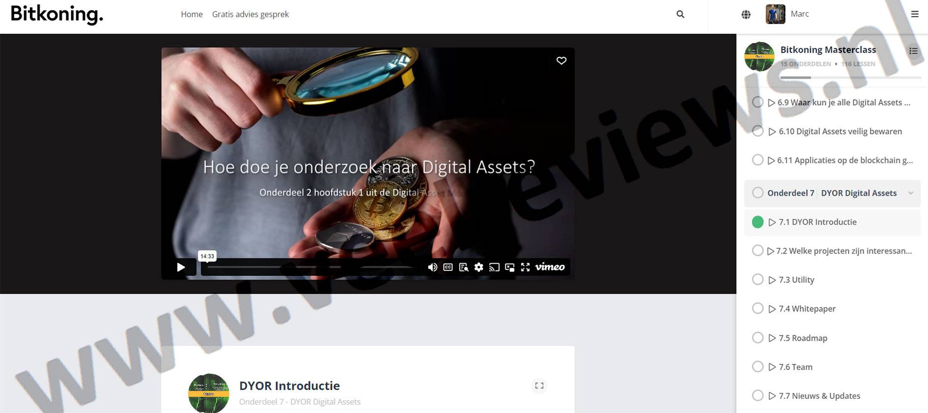 Ik wil je vertellen over de Bitkoning Masterclass trial, die je kunt vinden op de website van Bitkoning. Met deze trial kun je toegang krijgen tot een deel van het uitgebreide lesmateriaal van de Masterclass.