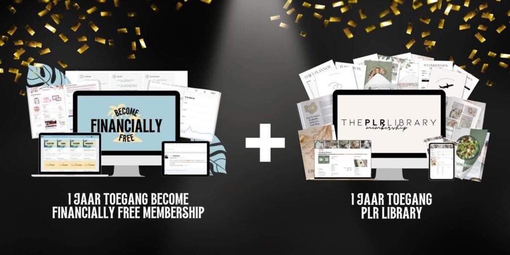 Je krijgt niet alleen toegang tot de academy. Er zit ook een jaar gratis lidmaatschap bij voor het Become Financially Free Membership en toegang tot de PLR Bibliotheek. Dat zijn extra voordelen die helpen bij jouw financiële succes.